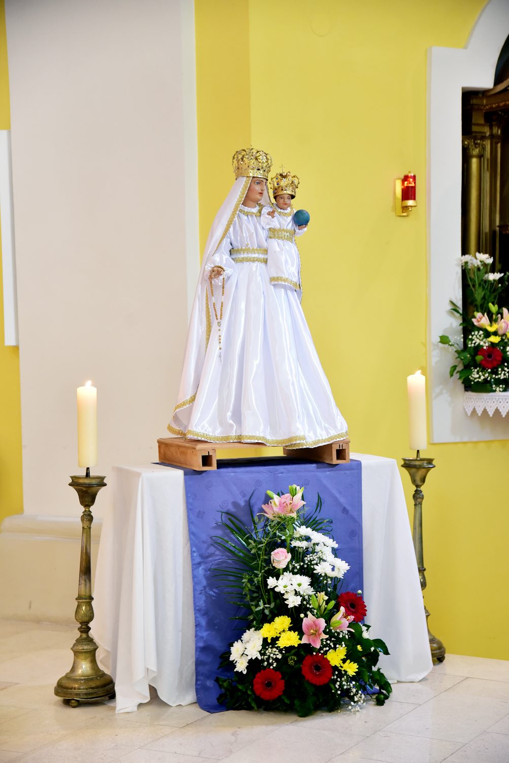 Nakon Popričesne molitve Biskup je kleknuo pred Gospin kip i molio Molitvu za Sinodu: „Stojimo pred Tobom Duše Sveti…“