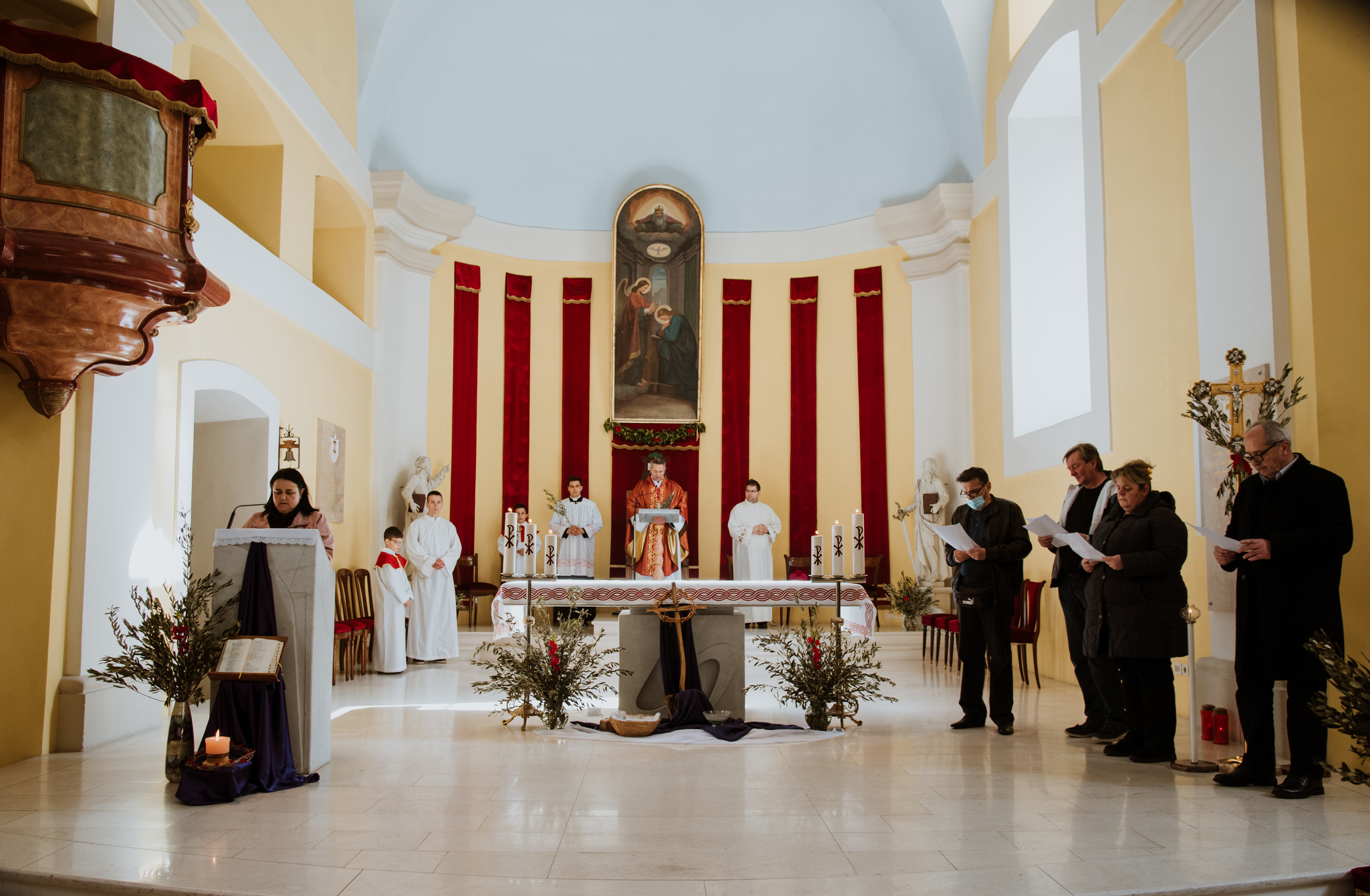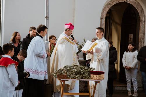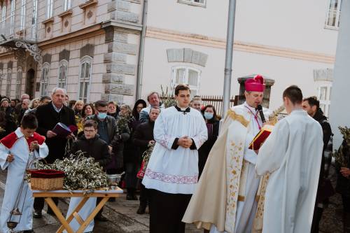Današnjom Cvjetnom nedjeljom 10.travnja 2022. započeo je Veliki tjedan tj. vazmeno otajstvo muke i uskrsnuća Kristova. Župljani Gospića su se, prije svečane sv. mise na uspomenu Isusovog ulaska u Jeruzalem, okupili u velikom broju u 9,30 sati ispred crkve Sv. Ivana Nepomuka gdje je gospićki župnik mons. Marinko Miličević blagoslovio maslinove grančice, drugo zelenilo i cvijeće odakle su svi u procesiji pošli u katedralu na misno slavlje. U katedrali se slavila sv. misa na kojoj su župnik i pjevači po ulogama čitali Muku Isusovu. Pjevanje je predvodio katedralni zbor pod vodstvom Franje Puškarića.